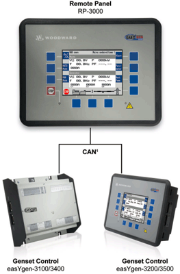 • Каждый RP-3000 подсоединяется непосредственно к одному easYgen-3100/3400 или easYgen-3200/3500 через CAN шину
